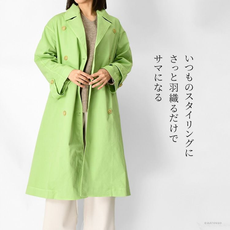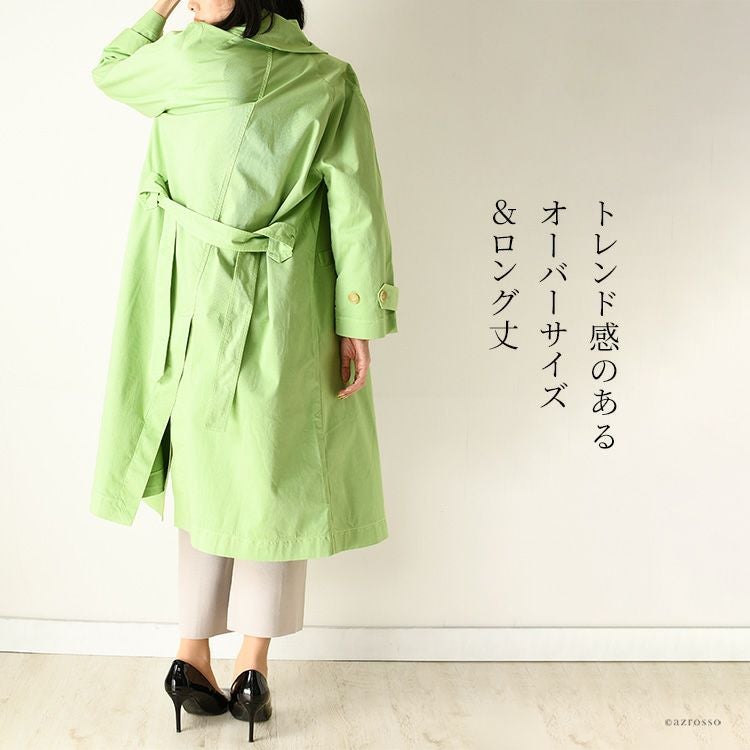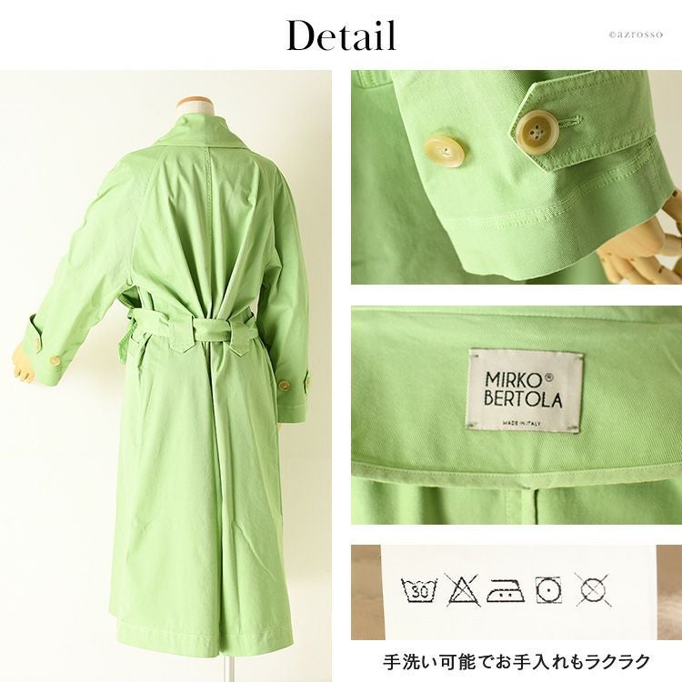 トレンドのゆったりオーバーサイズで体型を拾わずに着れるイタリア・ミルコベルトラのスプリングコート。嬉しい自宅で手洗いOK!爽やかなアップルグリーンカラー ロング丈 トレンチコート スプリングコート 春コート イタリア製 コート レディース アウター ブランド グリーン 黄緑 MIRKO BERTOLA ミルコベルトラ