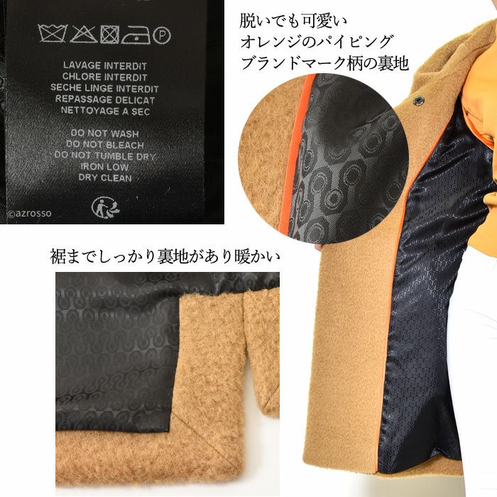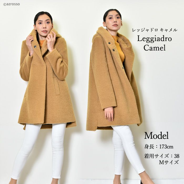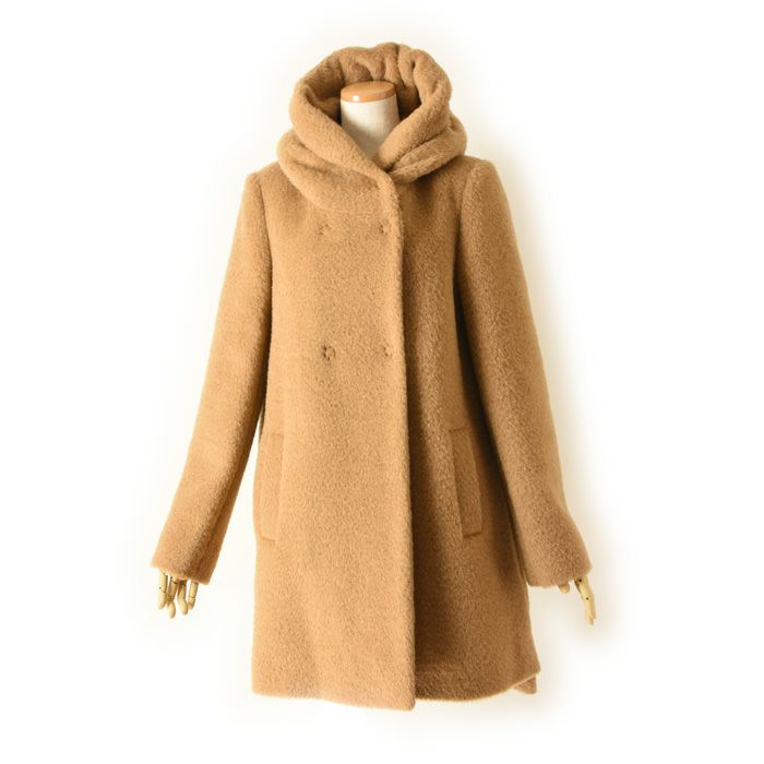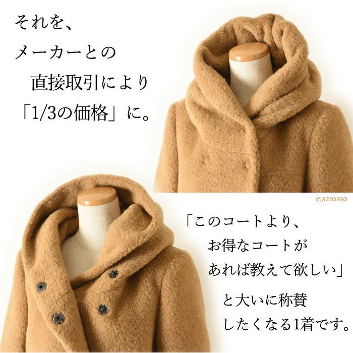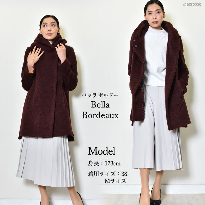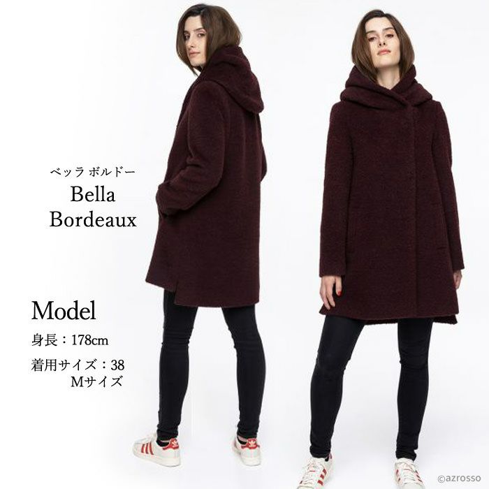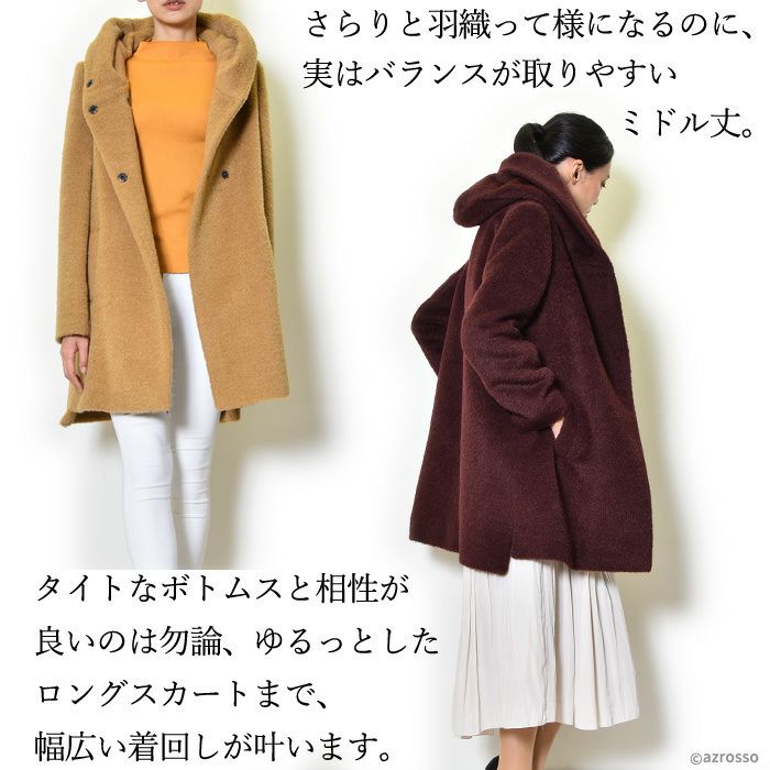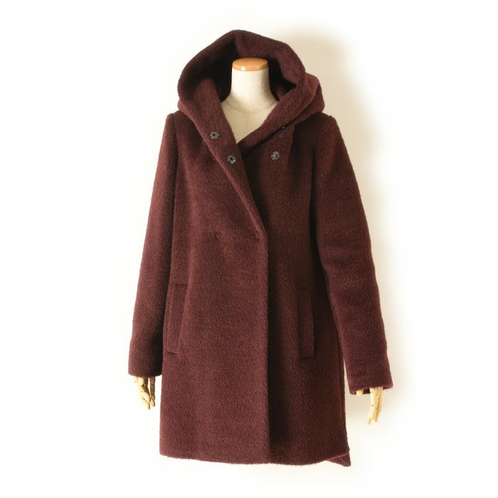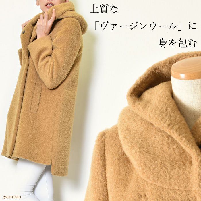 ヴァージンウール ミドル丈コート フード付き レディース シャギーコート ブランド MAISON LENER メゾン レネール キャメル ブラウン ボルドー ワイン