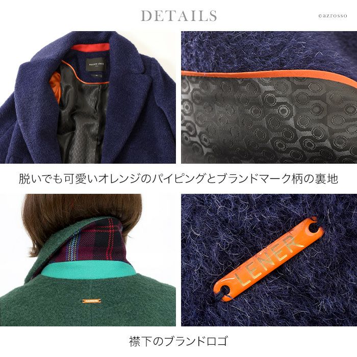 ヴァージンウール チェスターコート ロングコート レディース アウター ブランド MAISON LENER メゾン レネール ネイビー グリーン