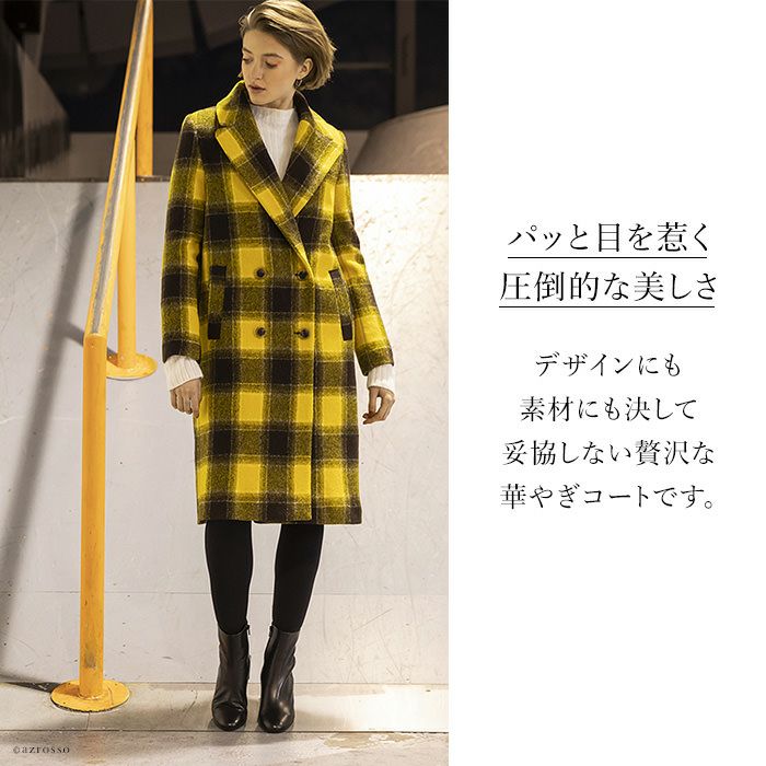 ヴァージンウール イエロー チェック 柄 コート ロングコート レディース アウター ブランド MAISON LENER メゾン レネール
