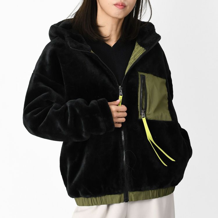 フリース ジャケット レディース アウター ジップアップ パーカー ボア ブルゾン フーディ リバーシブル 軽量 ファーブルゾン 軽い KAIRO Faux Fur Jacket カイロ フォー ファー ジャケット 1119483
