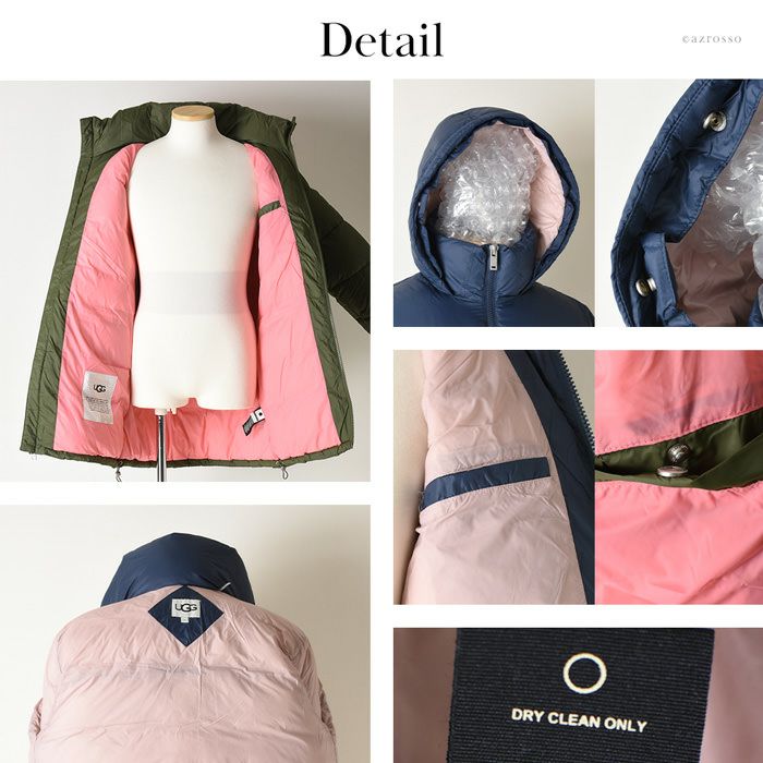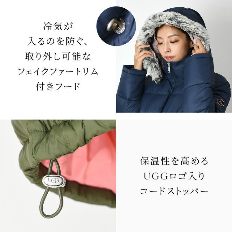 フード&裾に付いたUGGのロゴ入りコードストッパーと共に保温性を高めます。