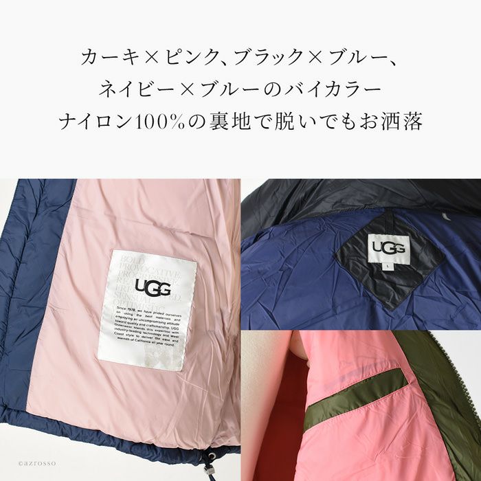 4. 日本未発売 UGG アグ アウター UGG Ozzy Mid-Length Puffer Jacket 中綿ジャケット フェイクファートリム付き フード付き キルティングジャケット 黒 ブラック ネイビー カーキ