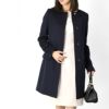イタリアが誇るアウターブランドHeresis(エレシス)のバージンウール仕立てのノーカラーコート。スタンダードなショート丈。セミフォーマル(入学式 卒業式 お受験)に着用できるきれいめシルエット ヴァージンウール コート ノーカラーコート ミドル丈 ネイビー ベージュ レディース アウター ブランド Heresis エレシス