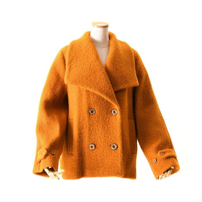 パッと目を惹く深くも鮮やかなショートコートをフランス パリの高級コート専門ブランドLENER(レネール レネル)から。希少で美しいバージンウール混レディースコートは秋冬の通勤 旅行にぴったり バージンウール ショートコート ダブルボタン コート レディース シャギーコート アウター ブランド MAISON LENER メゾン レネール ネイビー マスタード イエロー