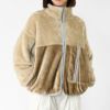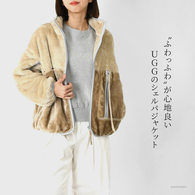 フェイクファーが気持ち良いふわふわもこもこジャケットUGG AUGUSTA SHERPA BASEBALL JACKET。サッと羽織れて軽量で暖かいビッグシルエットのライトアウター UGG アグ アウター AUGUSTA SHERPA BASEBALL JACKET オーガスタ シェルパ ベースボール ジャケット フェイクファー ブルゾン ジップアップ パーカー ビッグシルエット オーバーサイズ ピンク ベージュ 紫