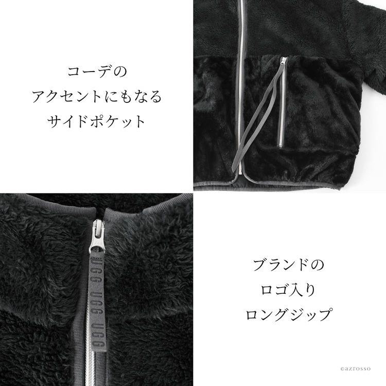 ふわふわ着心地のフリースアウター UGG MARLENE SHERPA JACKET(アグ マーレン シェルパ ジャケット)。サッと羽織れる便利なフルジップスタイル。シェルパフリースを使用した軽量で暖かいふわもこジャケット UGG アグ アウター MARLENE SHERPA JACKET マーレン シェルパ ジャケット フリース ブルゾン ジップアップ パーカー ビッグシルエット オーバーサイズ ブラック クリーム オフホワイト