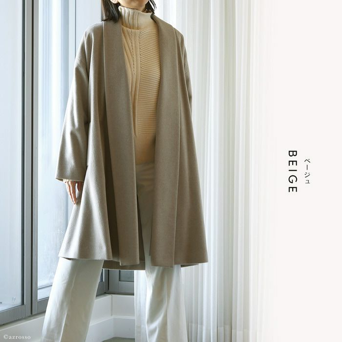 贅沢な艶と軽さと暖かさ。オールジャパンメイドのハイクオリティなミドルコート カシミヤコート セーブル ベージュ 春コート 秋 冬 レディース 日本製 ミドルコート ステンカラーコート