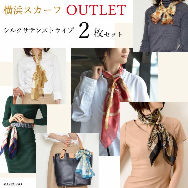 アウトレット 日本製シルクスカーフ 2枚セット シルクサテンストライプ おまかせだからお得 横浜スカーフ 【キャンセル・返品・交換不可】【ページ内注意事項必ずご確認下さい】【ラッピング不可】【通常ネコポス配送】