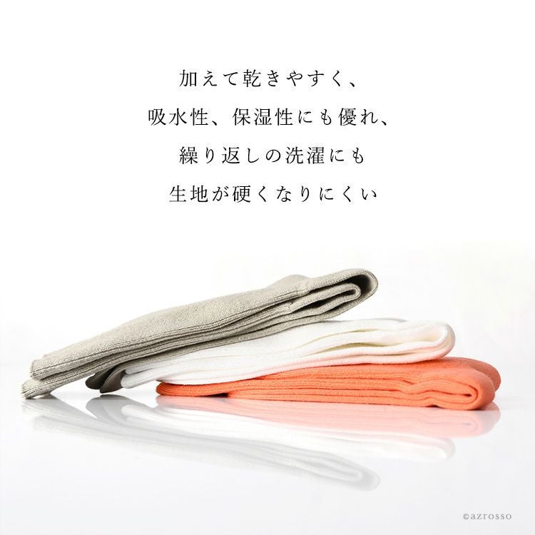 綿でありながらカシミヤのような肌触り、暖かさ、軽さを実現。加えて乾きやすく、吸水性、保温性にも優れ、繰り返しの洗濯においても生地が硬くなりにくい特性も嬉しいポイント。