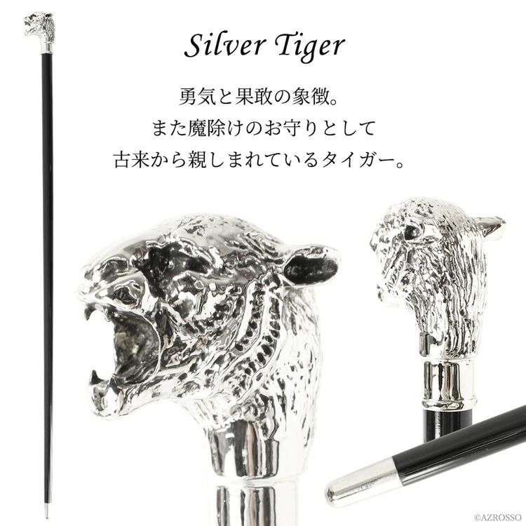 シルバータイガー ステッキ 虎 杖 おしゃれでかっこいいイタリアの杖 プレゼントやギフトにおすすめ pasotti
