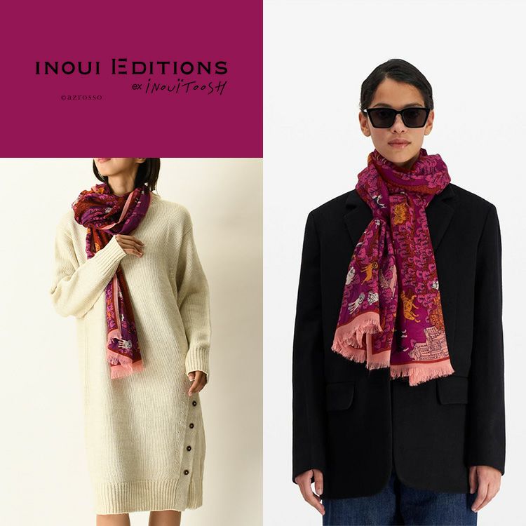 INOUI EDITIONS CENTRAL PARK イヌイエディションズ ストール 大判 70×190 ウール100% ピンク モノトーン イヌイトゥーシュ