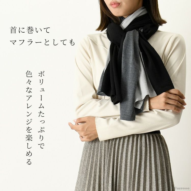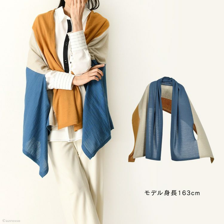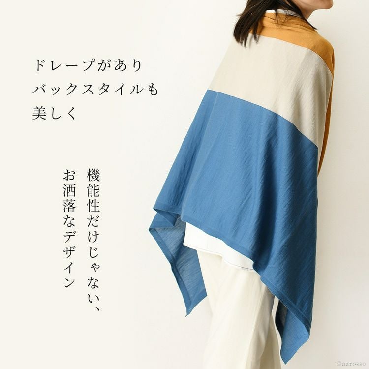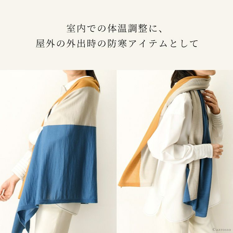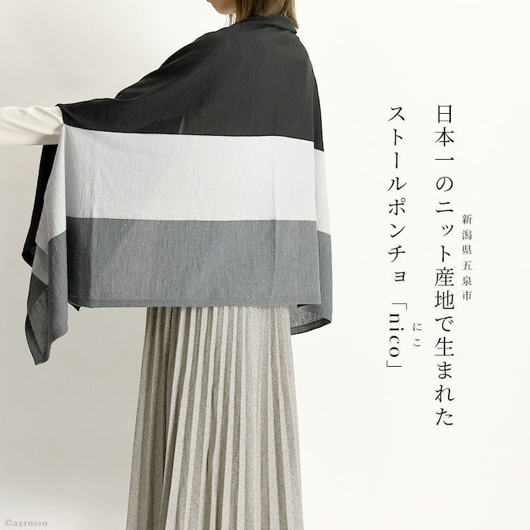 ストール風 カーディガン ストールポンチョ 薄手 大判 防寒 日本製 ウールマフラー 軽い 軽量 冷えとり 冷え対策 3色 ストライプ ブルー ベージュ 青 黄色 ブラック グレー 黒 五泉 ニット
