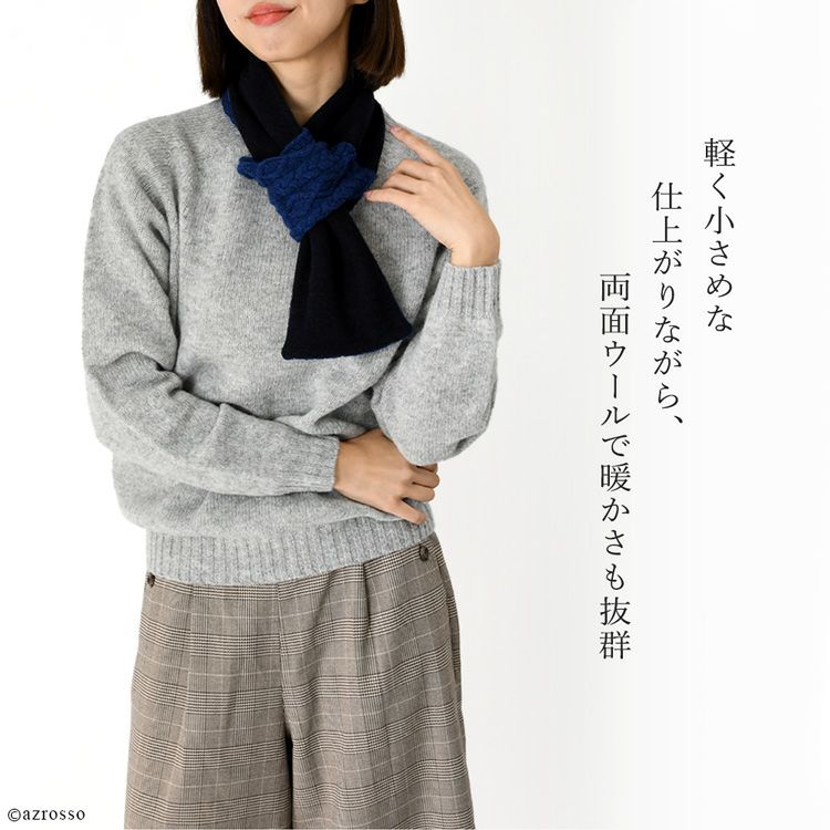 ▼特徴:ウール 毛 ナイロン ミニマフラー リバーシブル 2WAY 男女兼用 スヌード ネックウォーマー 首 ウォーマー マフラー ストール 冷え防止 冷え性 冷え対策 冷房対策 チクチクしない ユニセックス
