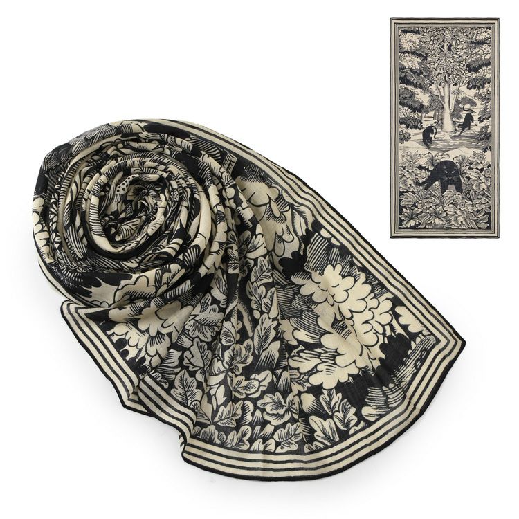 フランス発 INOUI EDITIONS イヌイエディションズ (INOUITOOSH イヌイトゥーシュ)の幻想的な森とミステリアスな黒猫が描かれた大判ストール 共通ブランド画像 商品画像3