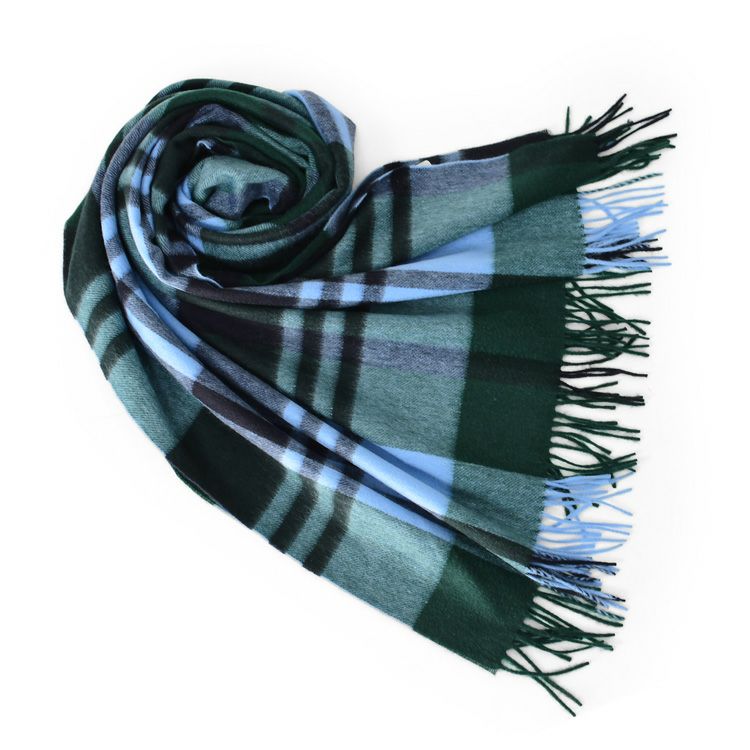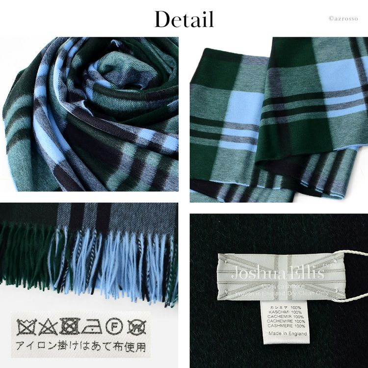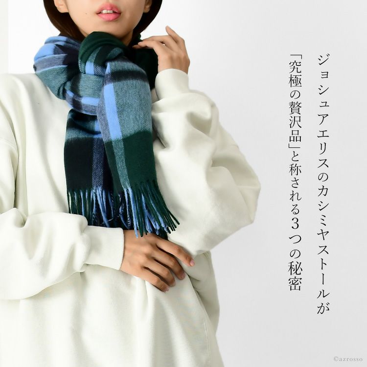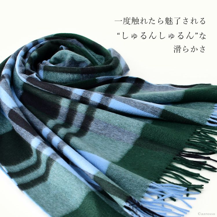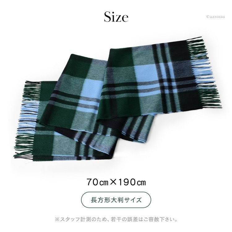 カシミヤ ストール 大判 厚手 タータンチェック カシミヤ100% ロングマフラー フリンジ グリーン ブルー レディース ブランド