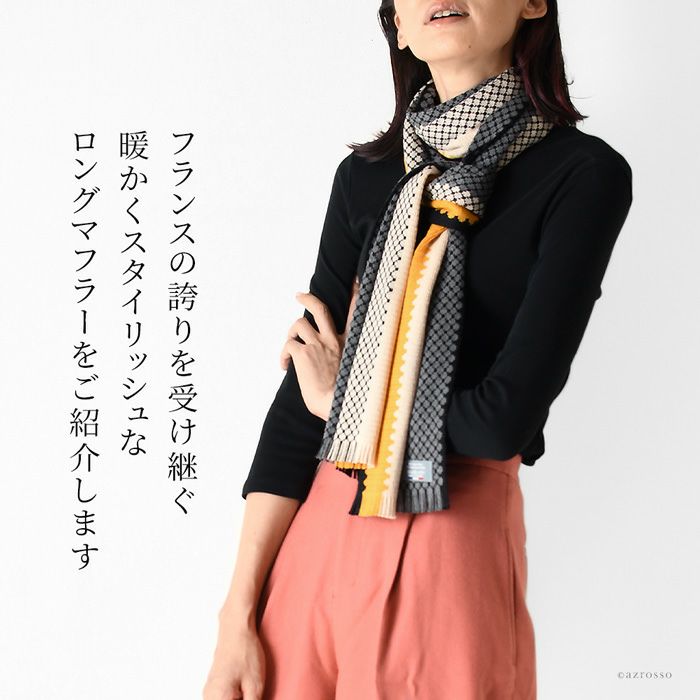 フランス製 ウール ロングマフラー 上質な糸で織り上げたファーストクラス品質 レディース ブランド MAISON BONNEFOY メゾンボンヌフォア