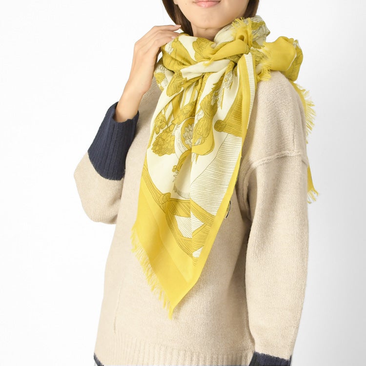 美しいスペインの庭園を細やかに描いた暖かい秋のロングストール。伝統のシルクスクリーン(手捺染)でプリント レディース 大判ストール ウール×シルク ストール 70×200 COLORS DE OTONO カラーズ デ オトノ