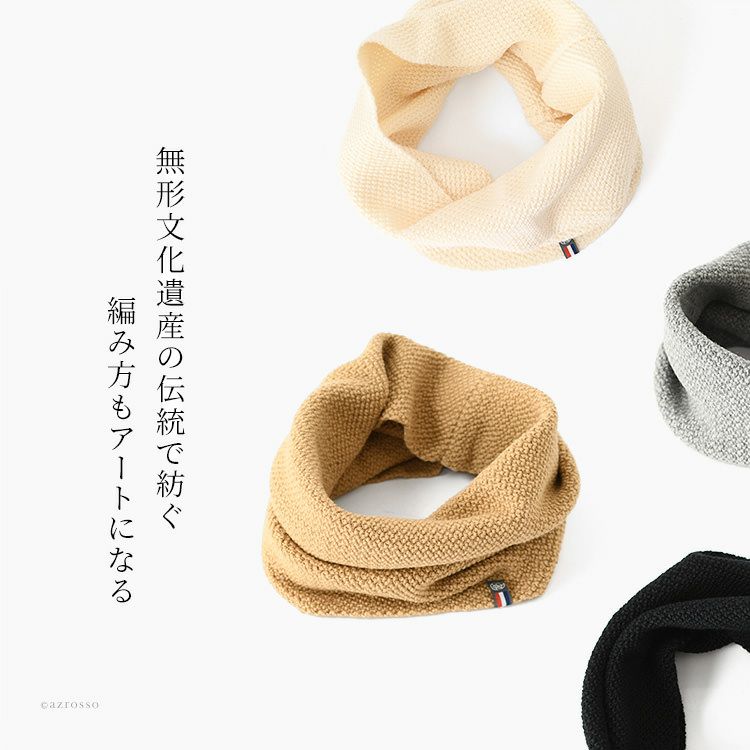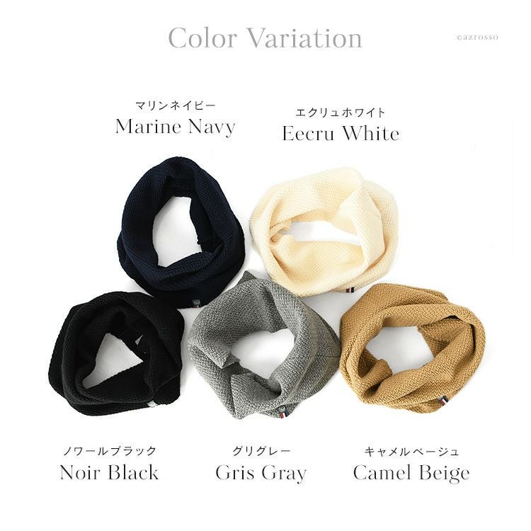 ウール ネックウォーマー 軽量 マフラー ブラック ネイビー キャメル グレー ホワイト ニット 無地 防寒 冷え対策 フランス製 ブランド メゾンボンヌフォア スヌード レディース