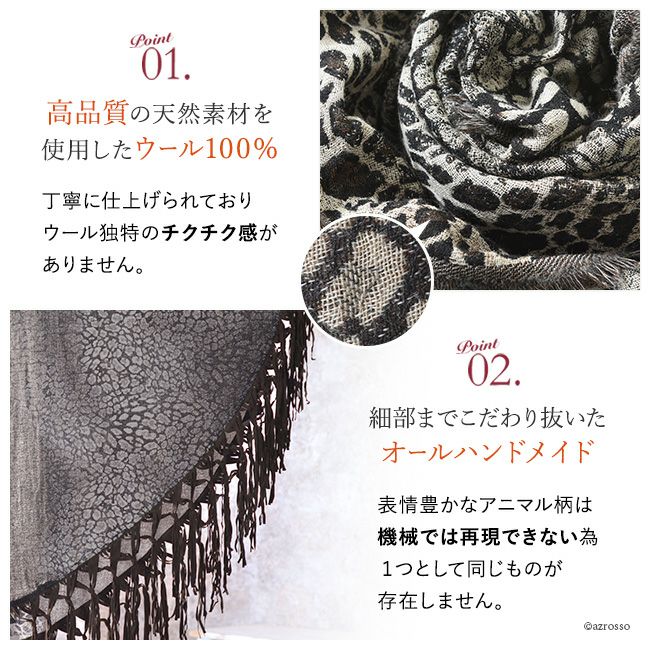 アニマル柄ハーフムーンケープ/ショール/暖かいウール100%/秋冬/厚手/敬老の日の贈り物や誕生日プレゼントにも