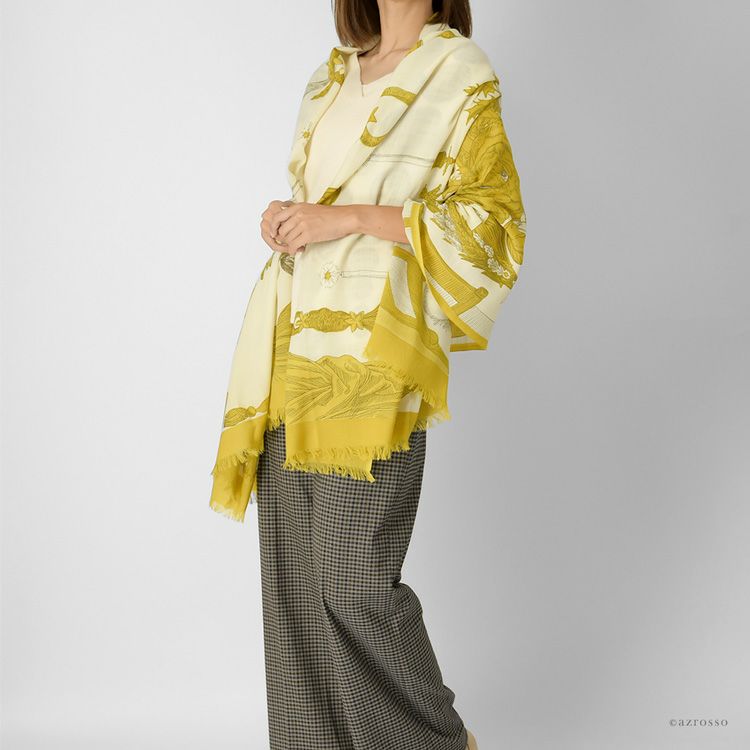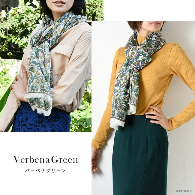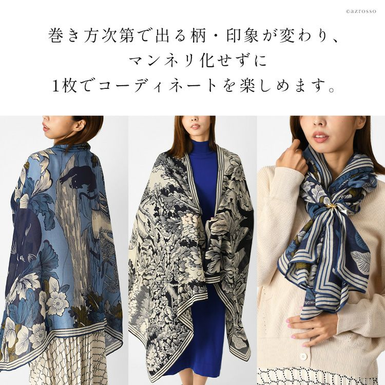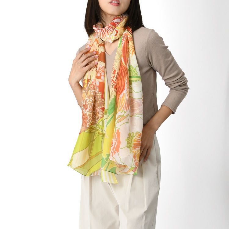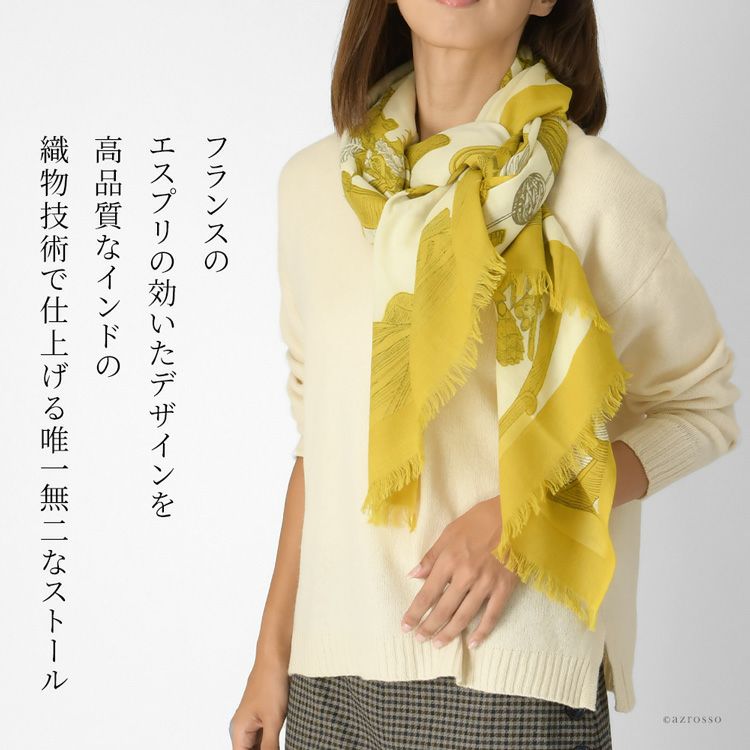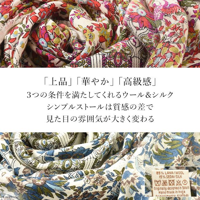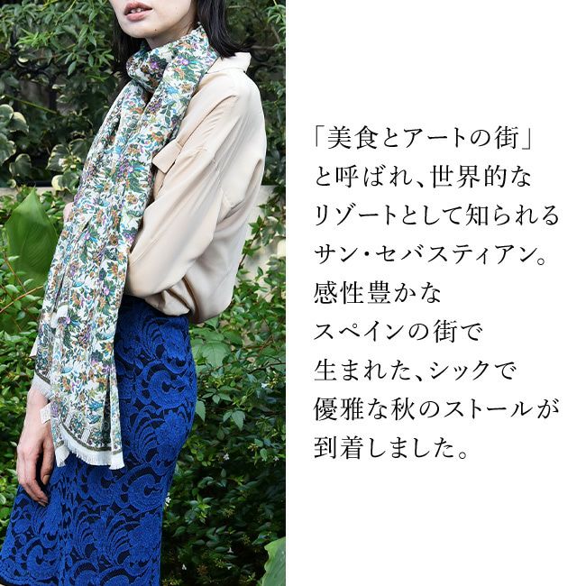 美しいスペインの庭園を細やかに描いた暖かい秋のロングストール。伝統のシルクスクリーン(手捺染)でプリント レディース 大判ストール ウール×シルク ストール 70×200 COLORS DE OTONO カラーズ デ オトノ