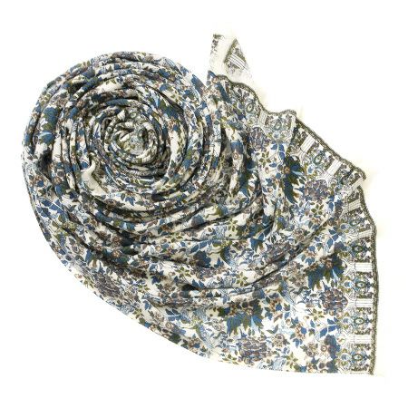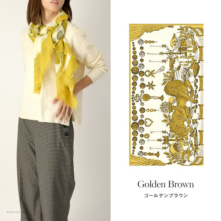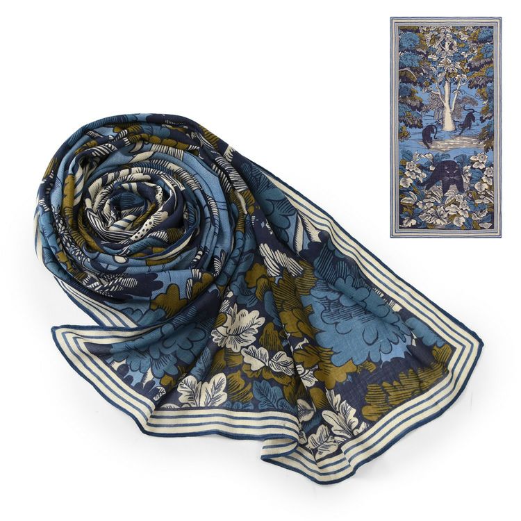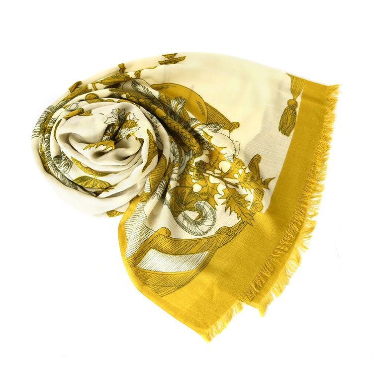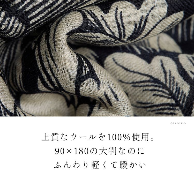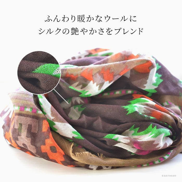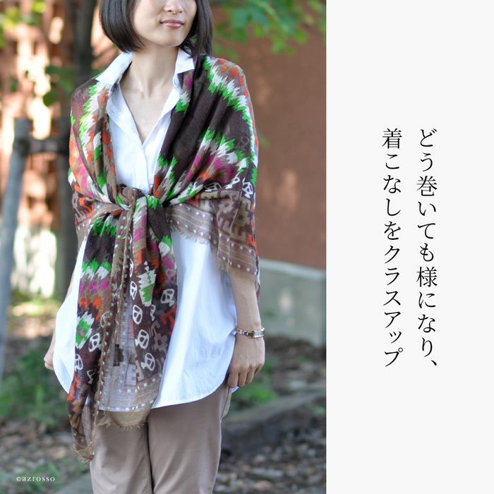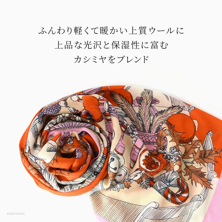 美しいスペインの庭園を細やかに描いた暖かい秋のロングストール。伝統のシルクスクリーン(手捺染)でプリント レディース 大判ストール ウール×シルク ストール 70×200 COLORS DE OTONO カラーズ デ オトノ
