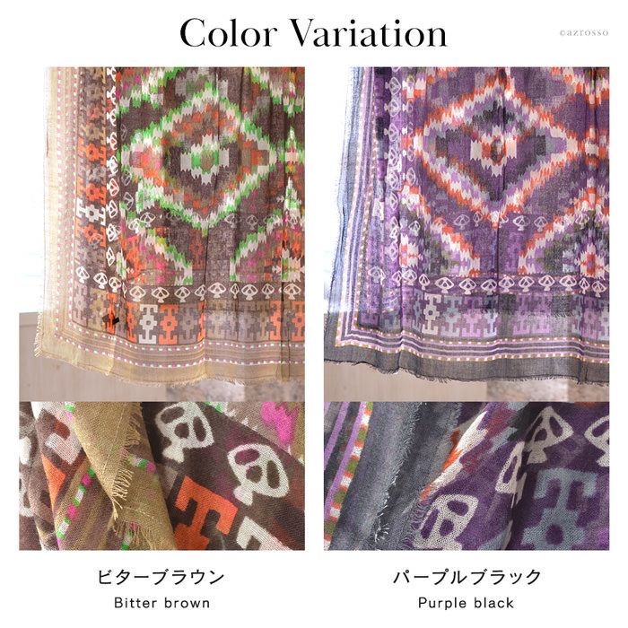 世界に一つとして同じものがないアートなストールを作るTolani(トラニ)のフォークロア調(民族模様)がおしゃれなスクエアストール。巻き方・結び方アレンジしやすい大判サイズ 150×150|ウール シルク ストール 大判 ショール 正方形 民族模様 スカル柄 レディース Tolani トラニ ナバホ