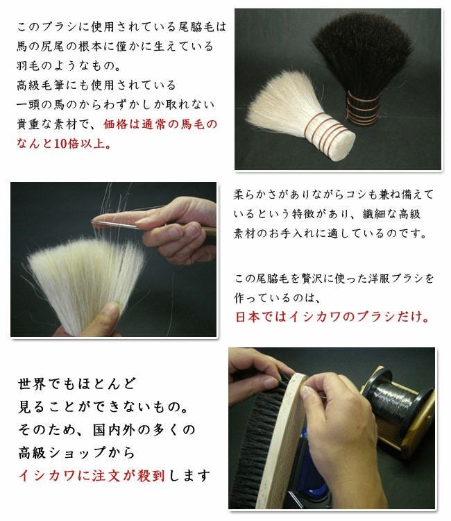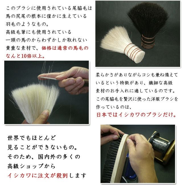 洋服ブラシ最高峰。スタイリストや有名ブランドが認める高級ブラシ。毛皮、スーツ、カシミヤ、和服、ビッキューナなどより繊細なニット等のお手入れに イシカワブラシ 石川ブラシ プレミアムタイプ 日本製 高級洋服ブラシ 馬毛尾脇毛 石川和男氏から直接指導を受けた正規販売店 カシミヤ