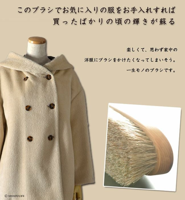 洋服ブラシ最高峰 スタイリストや有名ブランドが認める日本製の高級洋服ブラシ 上質なコートや重衣料のお手入れに。これさえあればクリーニングはほぼ不要です。 イシカワブラシ 石川ブラシ 馬毛 尾脇毛 高級洋服ブラシ 石川和男氏から直接指導を受けた正規販売店 カシミヤ コート