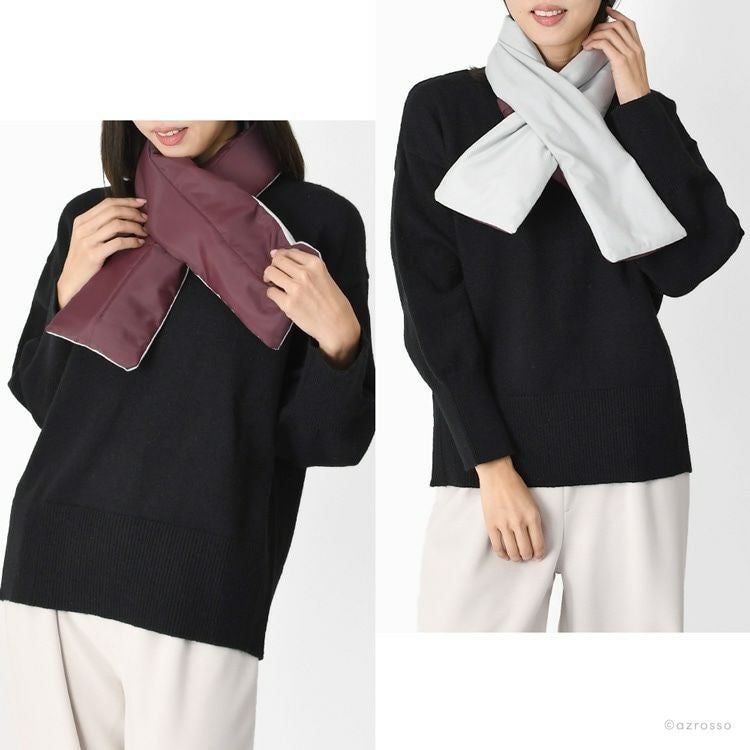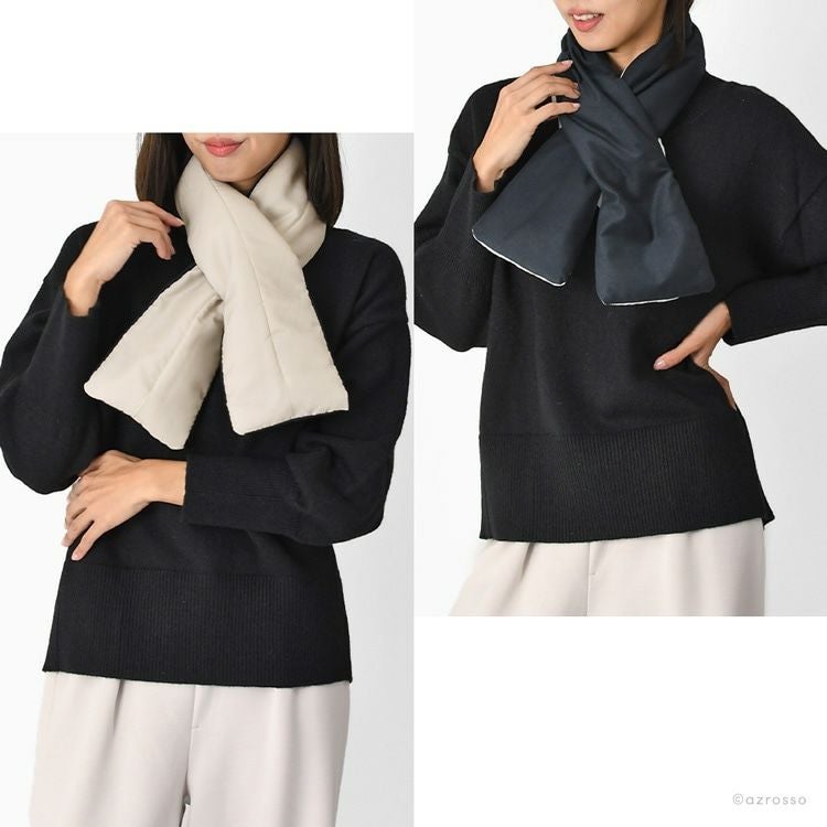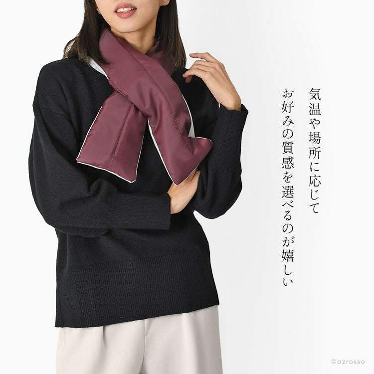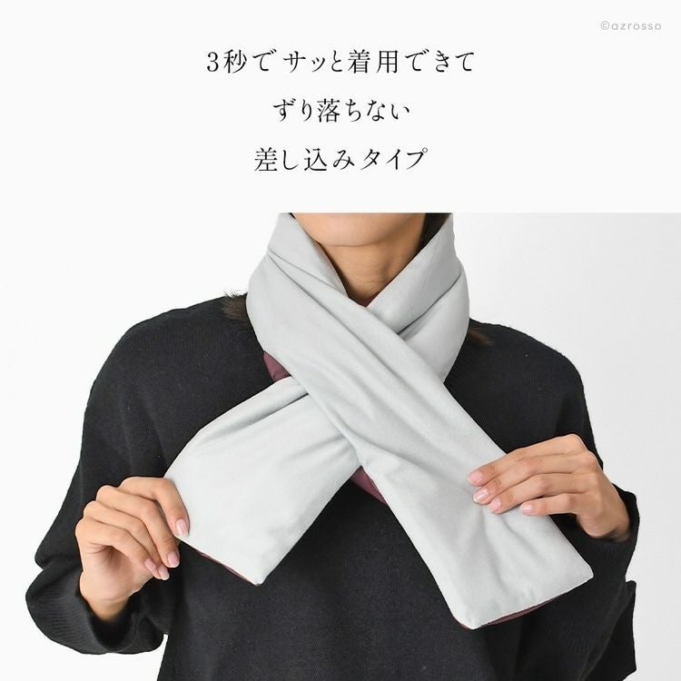 ふわさら×つるつるの異素材リバーシブルが嬉しい日本製差し込みマフラー。コンパクトで超軽量で保温・保湿・速乾に優れているネックウォーマー 差し込みマフラー 日本製 レディース 暖かい リバーシブル ネックウォーマー コンパクト ミニマフラー 冬