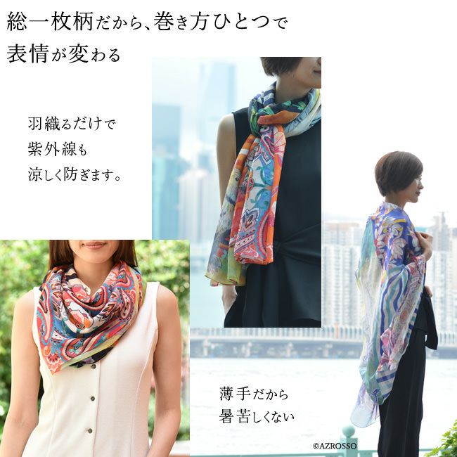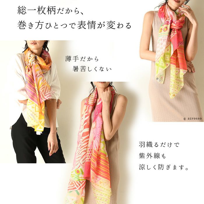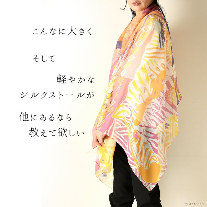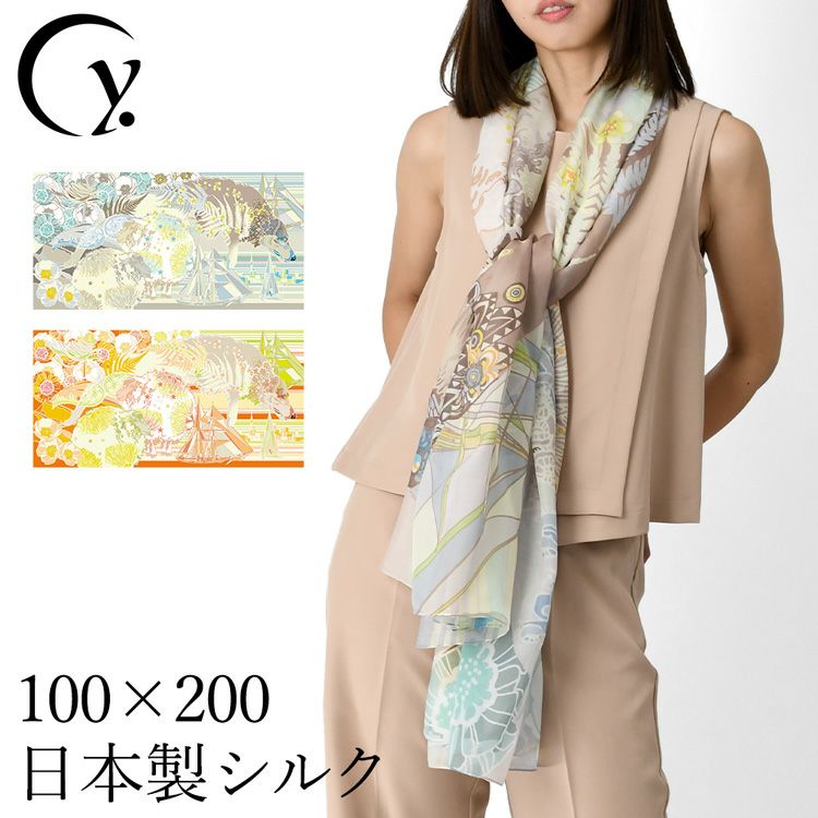横浜スカーフブランド .Y ドットワイ 2022新作ストール ショールとして使える大きいサイズ。薄くて軽いから使いやすい、コンパクト収納できます。 アフリカの大地を描く超大判ストール 100×200 シルク レクセル 日本製 ショール 紫外線対策や冷房対策にも