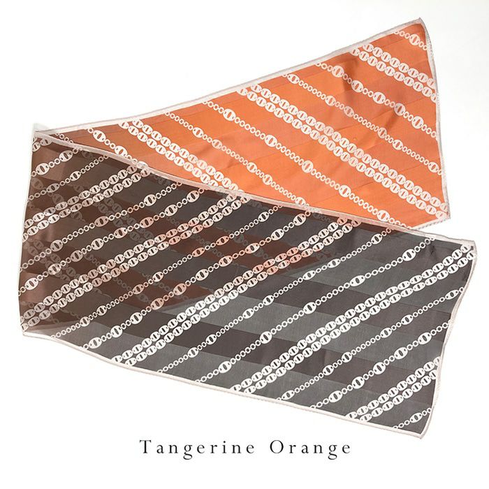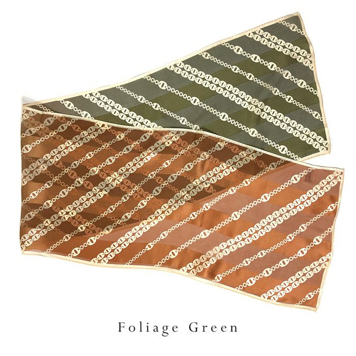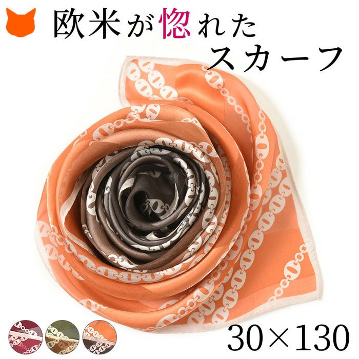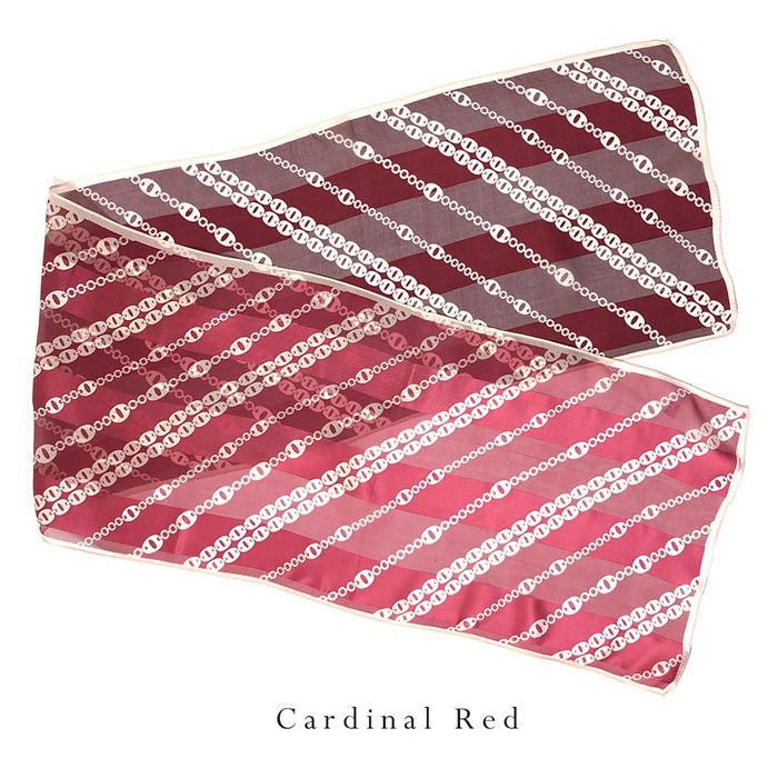 28×128|世界トップクラスの技術で紡ぐスカーフブランド キヌフローレス(KINU flawless) 秋冬スカーフ「オンブレーチェーン」。レッド、グリーン、オレンジをご用意。 オンブレーチェーン サテン シルクスカーフ 日本製 横浜スカーフ レトロ柄 大判 かっこいい おしゃれ
