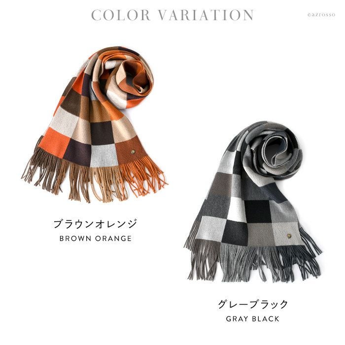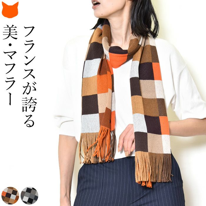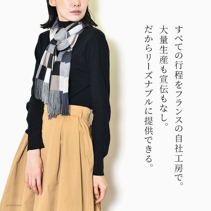 「無形文化遺産」受賞のブランドだから、品質はファーストクラス。贈り物にぴったりの上品でお洒落なレディースマフラー フランス製 ウール ブロックチェック ロングマフラー 上質な糸で織り上げたファーストクラス品質。レディース ブランド MAISON BONNEFOY メゾンボンヌフォア