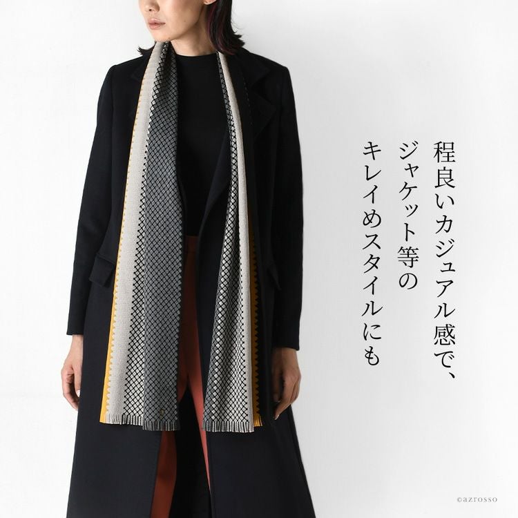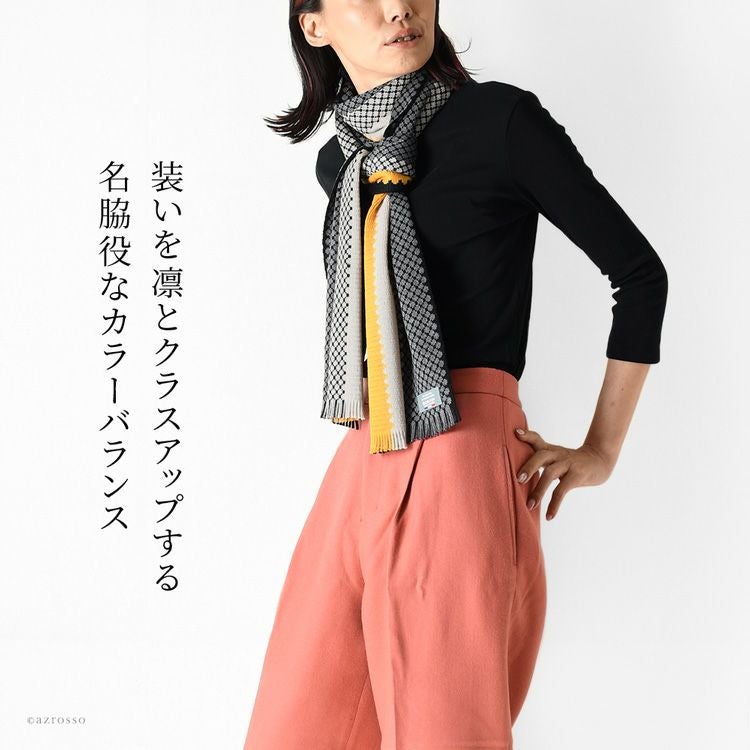 絶妙な配色でコーデに華を添えるフランス生まれのロングマフラー。「無形文化遺産」受賞のブランドだから、品質はファーストクラス。贈り物にぴったりなお洒落で暖かい上質マフラー フランス製 ウール ロングマフラー 上質な糸で織り上げたファーストクラス品質 レディース ブランド MAISON BONNEFOY メゾンボンヌフォア