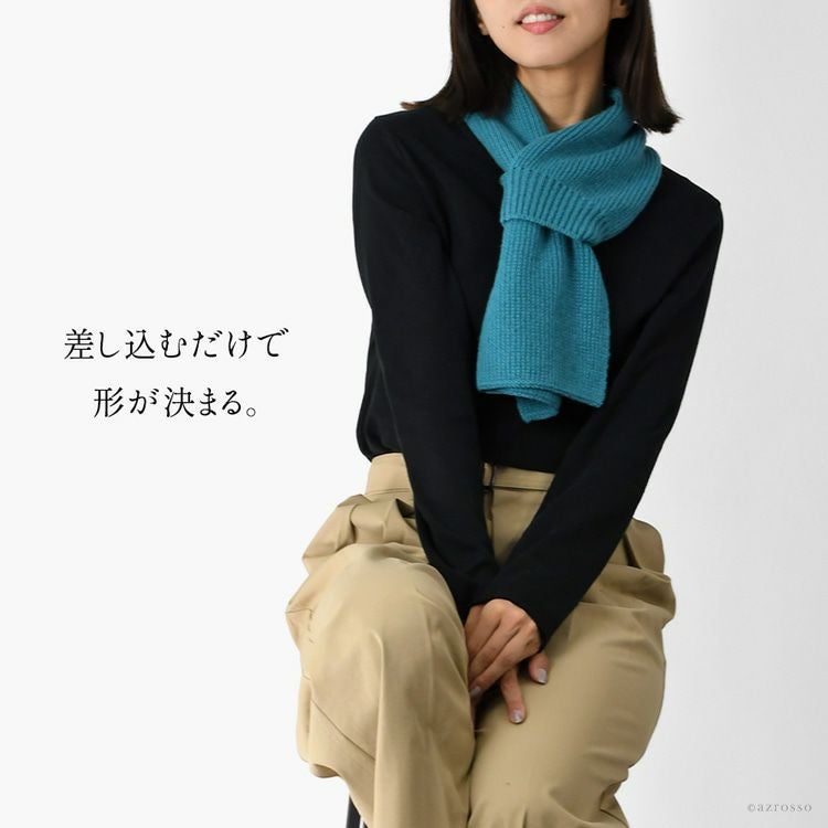 一人の職人が稀少な手横編み機で編み上げる、1日4本までしかつくれない国産カシミヤマフラー。ふわふわ滑らかで軽やかな肌触りと差し込み仕様の便利なデザインが魅力。ギフトにも最適 日本製 カシミヤ100%マフラー 差し込み式 レディース ミニ 短め コンパクト 冬 ネックウォーマー プレゼント ギフトにおすすめ