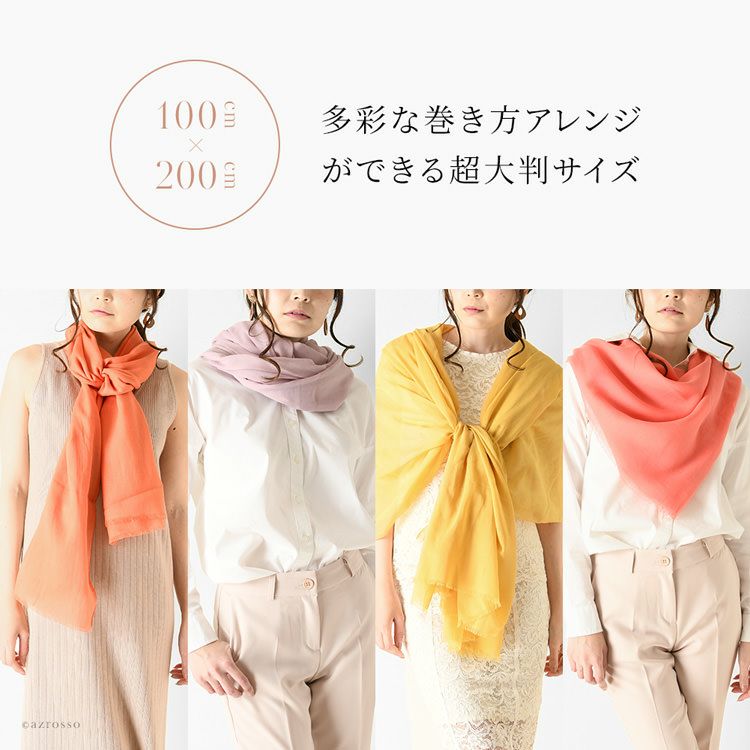 パッと目を惹く美しい発色のコットンストール。ショールとしても使える超大判サイズ。明るいカラーがお肌を明るく見せると共に春夏コーデを一気に洗練された印象に。母の日プレゼントや誕生日ギフトにおすすめ 200×100|超大判 ストール コットン100% 薄手 ショール 無地 カラーズデオトノ COLORS DE OTONO レディース ピンク コーラル オレンジ ベージュ イエロー