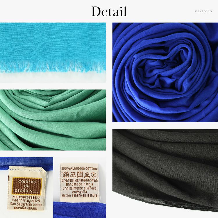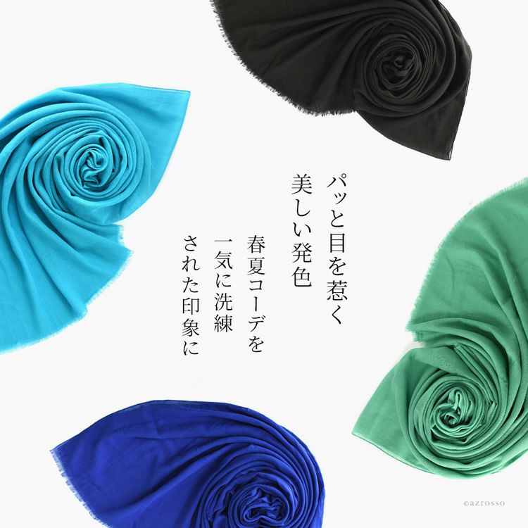 パッと目を惹く美しい発色のコットンストール。ショールとしても使える超大判サイズ。春夏コーデを一気に洗練された印象にする鮮やかなカラーとベーシックな黒をご用意。母の日プレゼントや誕生日ギフトにおすすめ 200×100|超大判 ストール コットン100% 薄手 ショール 無地 カラーズデオトノ COLORS DE OTONO レディース ブラック グレー ターコイズ ブルー