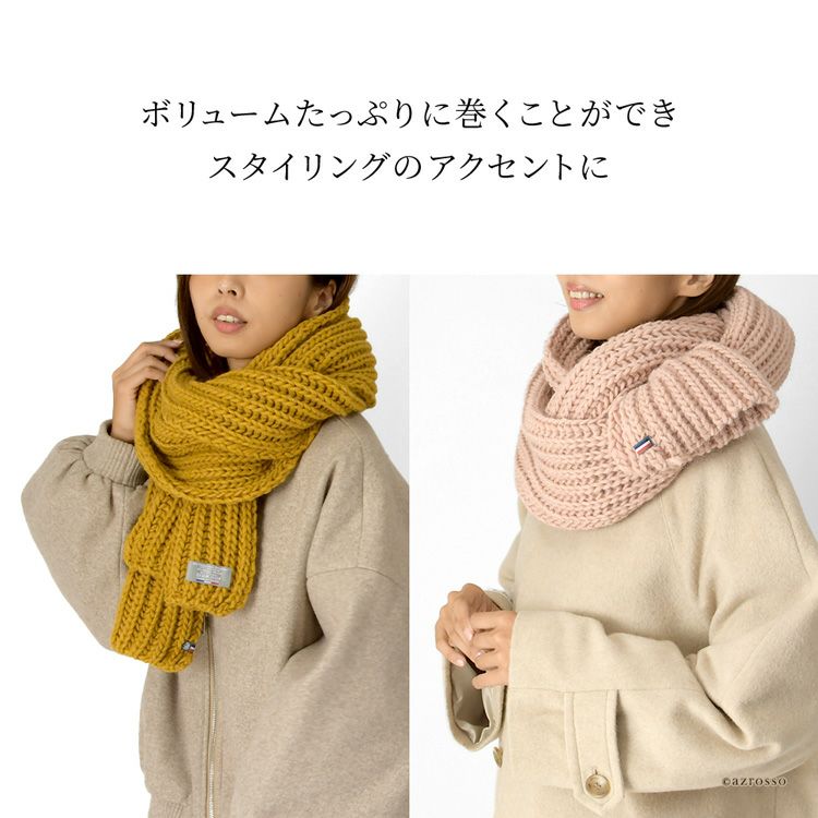 ふんわりボリュームで暖かく、巻くだけでサマになるニットマフラーをフランスブランドMAISON BONNEFOY(メゾンボンヌフォア)より。アクリル、ウール、アルパカ混紡生地でチクチクしづらい マフラー ニット 厚手 無地 アクリル アルパカ ウール レディース 秋冬 大判 マフラー ストール 暖かい ブランド かわいい ピンク 青 ブルー 黄色 イエロー オレンジ ギフト プレゼント 女性 誕生日 フランス製