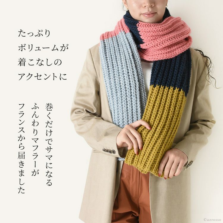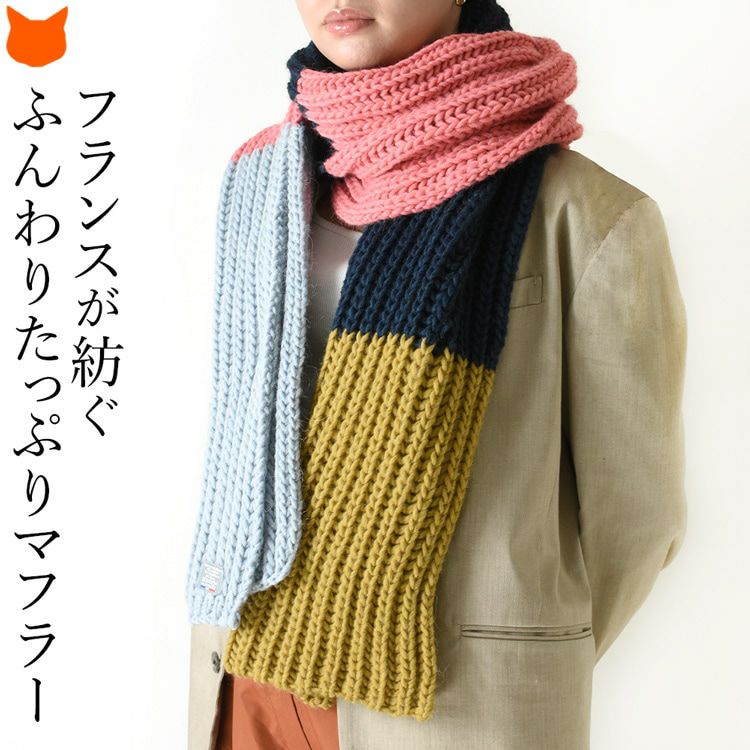 ふんわりボリュームで暖かい、巻くだけでサマになるニットマフラーをフランスブランドMAISON BONNEFOY(メゾンボンヌフォア)より。チクチクしない柔らかい肌触り。顔色を明るく見せる鮮やかなマフラー マフラー ニット 厚手 アクリル アルパカ ウール レディース 秋冬 大判 マフラー ストール 暖かい ブランド かわいい ギフト プレゼント 女性 誕生日 マルチカラー ピンク 青 紺 ネイビー ブルー 黄色 イエロー フランス製
