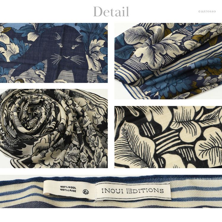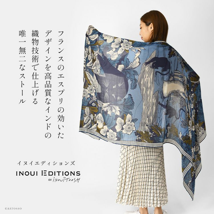 どう巻いても美しい フランスブランド INOUI EDITIONS イヌイエディションズ (INOUITOOSH イヌイトゥーシュ)のミステリアスな黒猫が描かれた大判ストール。軽く暖かい上質ウール INOUI EDITIONS PANTHERE イヌイエディションズ ストール 大判 90×180 ウール100% アニマル