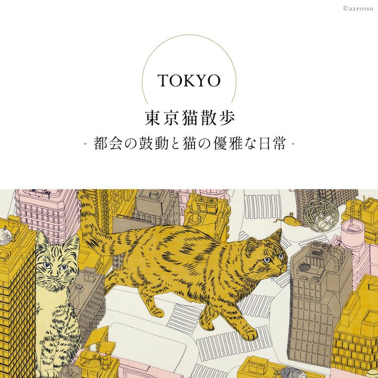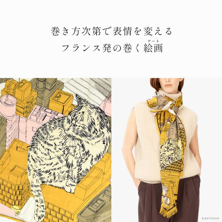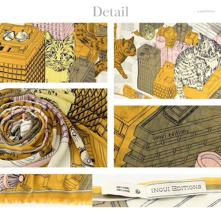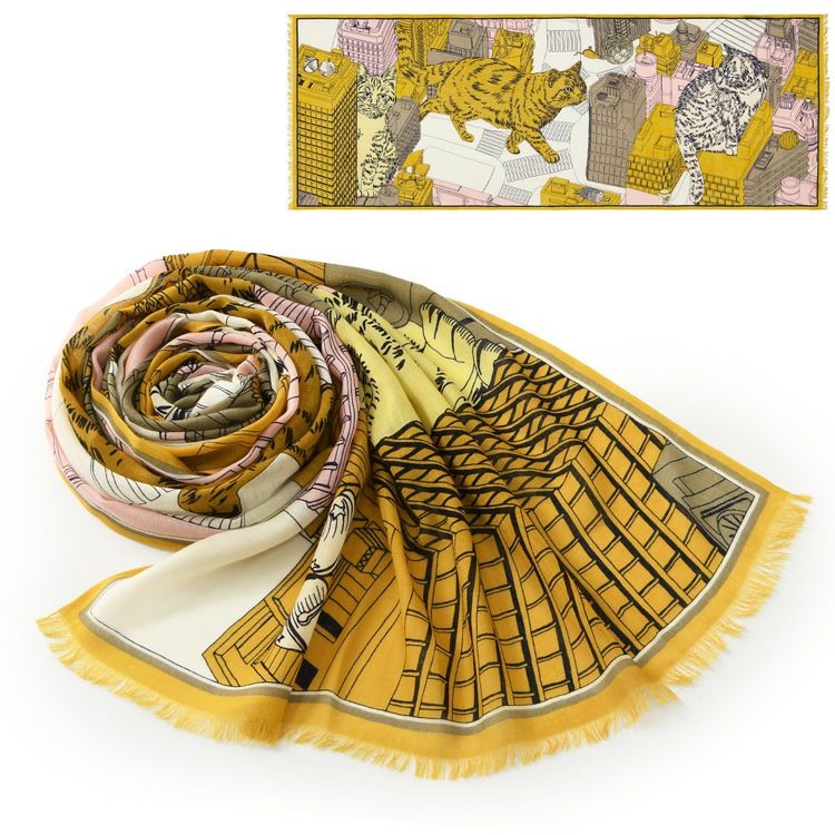 どう巻いても美しい フランスブランド INOUI EDITIONS イヌイエディションズ (INOUITOOSH イヌイトゥーシュ)の東京・渋谷の街並みを歩く猫が描かれた大判ストール。軽く暖かい上質ウール INOUI EDITIONS TOKYO イヌイエディションズ ストール 大判 70×190 ウール100% アニマル 猫