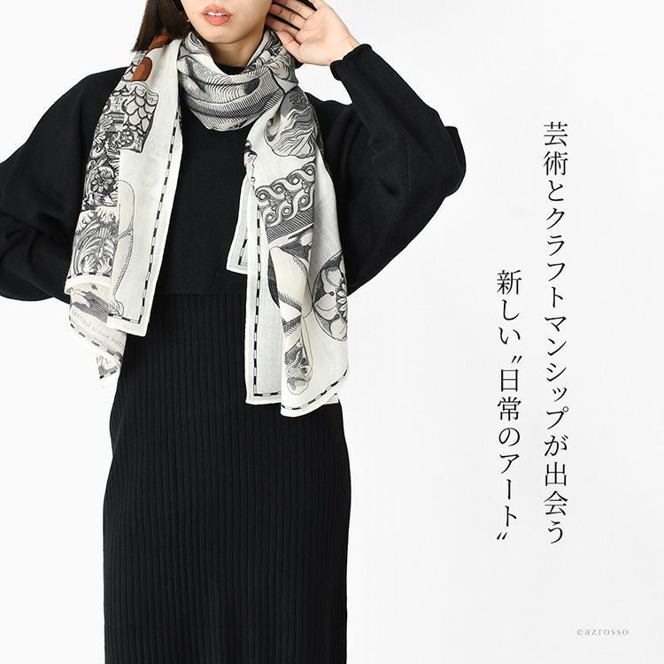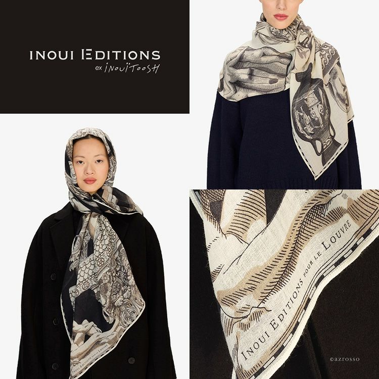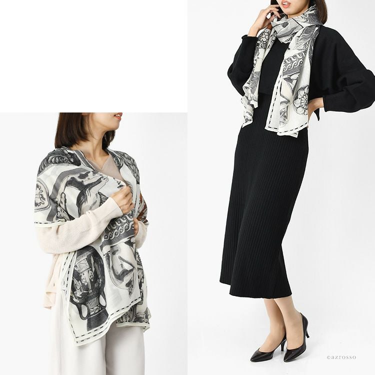 フランスブランド INOUI EDITIONS(イヌイエディションズ)とルーブル美術館の特別なコラボレーションストール。古代ギリシャやローマの彫刻モチーフの美しいウールストール。190cm×80cmの大判サイズ ウール ストール 大判 ルーブル美術館コラボ 薄手 暖かい おしゃれ レディース 190×80 INOUI EDITIONS イヌイエディションズ ブランド