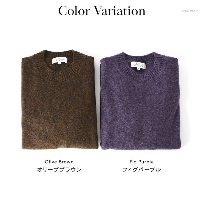 ニット セーター クルーネック ゆったり 長袖 日本製 トップス カーキ ブラウン パープル