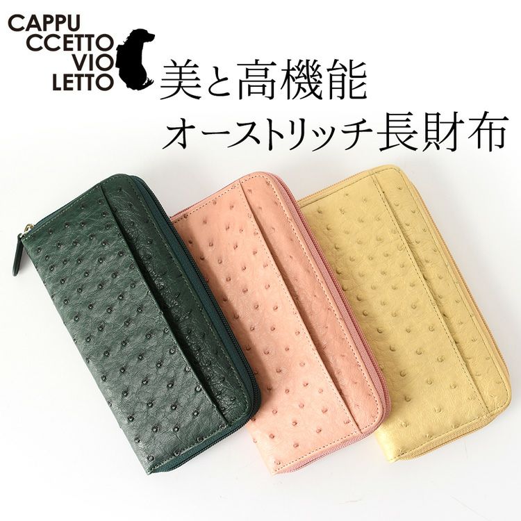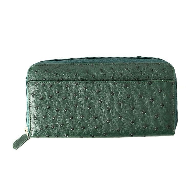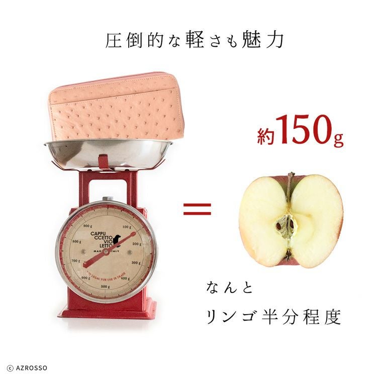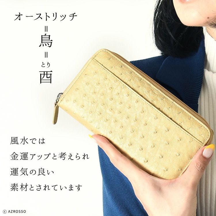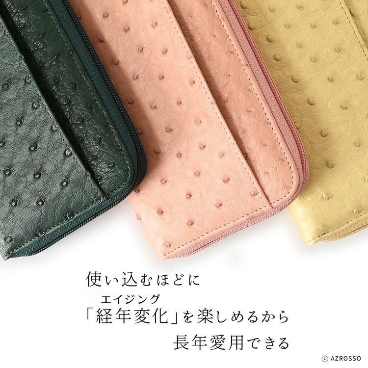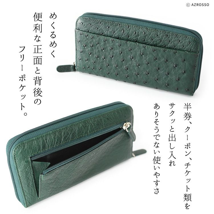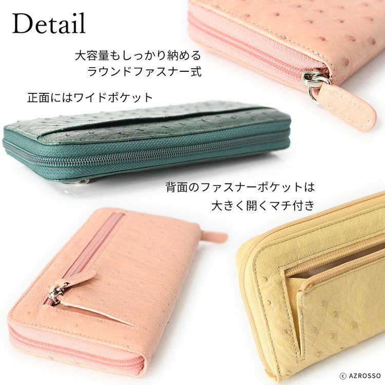 ▼特徴:長財布|本革|オーストリッチ|軽い|軽量|大容量|ラウンドファスナー|カード収納豊富|たくさん入る|ガバッと開くお財布|ハーフポイント