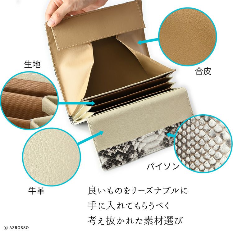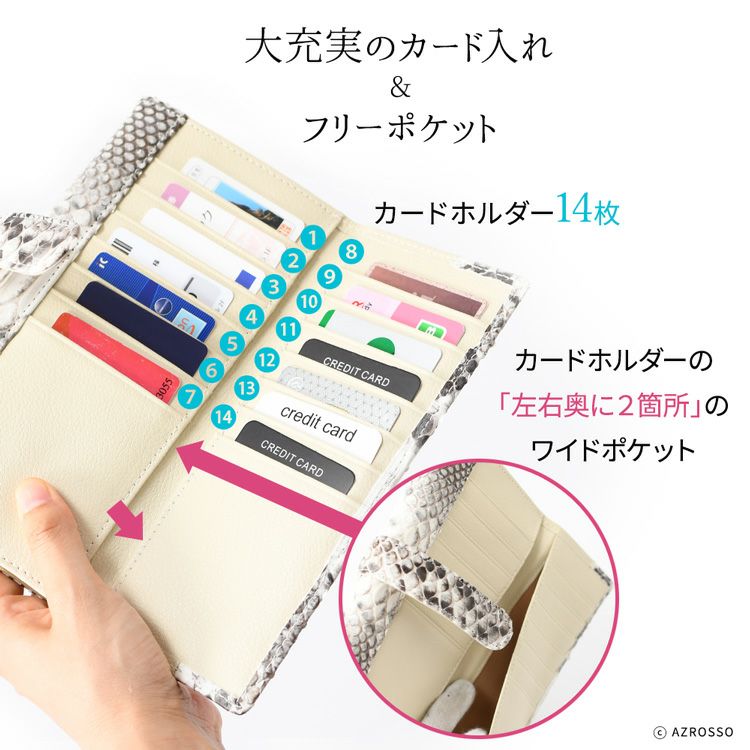 ▼特徴:長財布|本革|ギャルソン財布|ダイヤモンドパイソン|蛇革|大容量|カード収納豊富|たくさん入る|ガバッと開くお財布