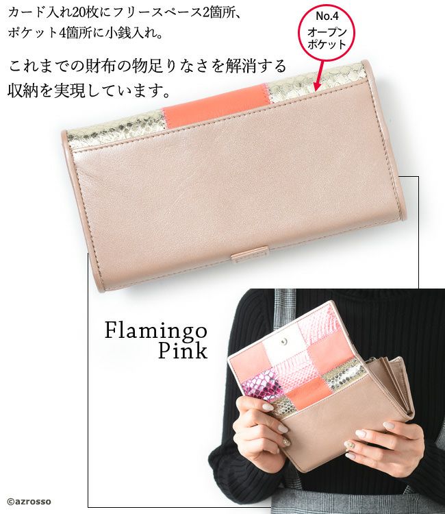個性豊かなレザーたちだからこそのデザインは、ただ可愛いだけでなく、お持ちのバッグとのコーディネートを楽しめるそんな長財布です。