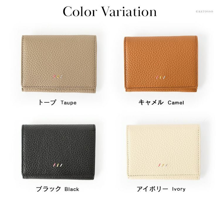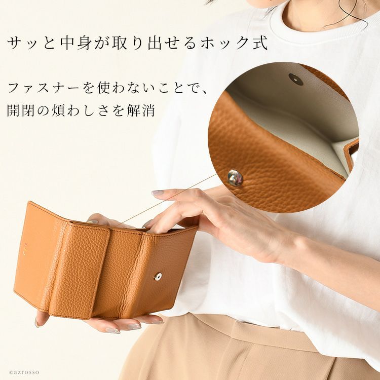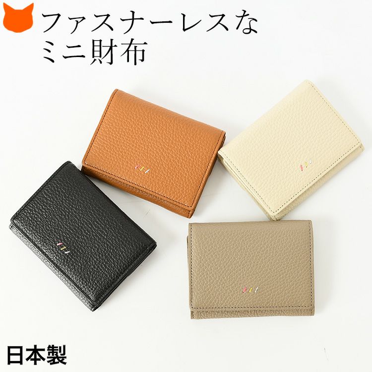 日本製 ミニ財布 ファスナーレス 本革 牛革 レザー 三つ折り財布 ブランド トープ キャメル 黒 ブラック アイボリー