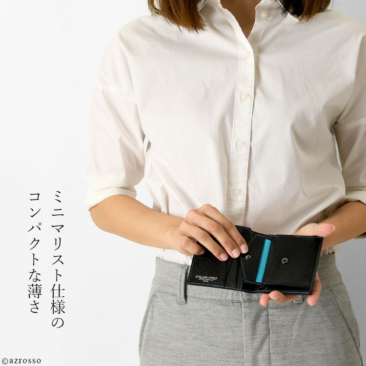 ▼特徴: 財布 サイフ 札入れ 小銭入れ カード入れ マチあり 本革 山羊革 ヤギ革 レザー 二つ折り 二つ折 2つ折り 黒 ブラック 緑 グリーン 青 ブルー オレンジ ステッチ 薄型 薄い 軽い 軽量 スリム