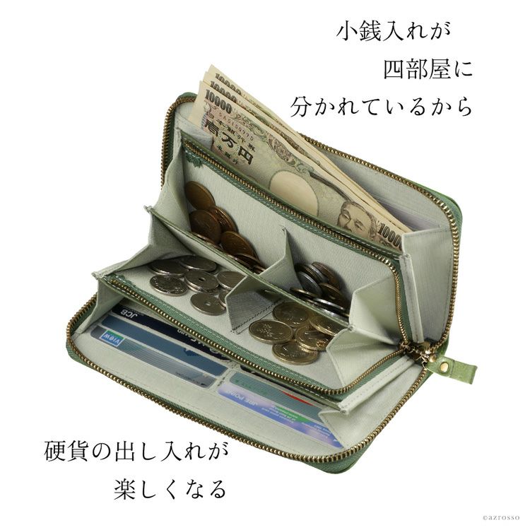 鮮やかなカラーが美しい機能性抜群の長財布、たくさんのポケットと仕切りで便利に使えてカーフレザーが手に馴染む。豊岡の鞄ブランドが作った大収納なお財布です。 イタリアンレザー 日本製 長財布 ラウンドファスナー 4分割 小銭入れ 収納 仕切り ポケット 豊岡 牛革 大人 レディース 【通常ネコポス配送】