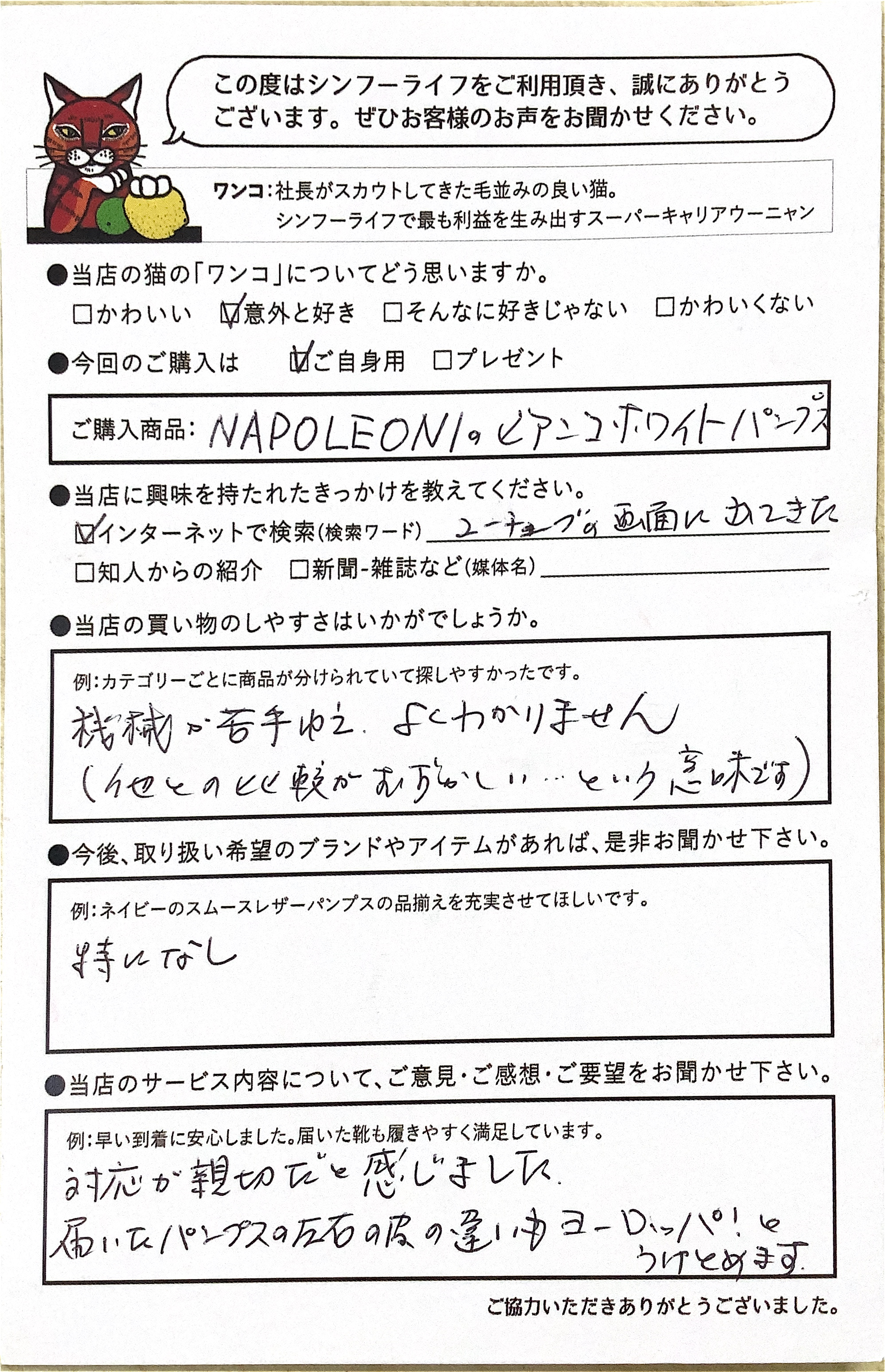 ご購入日:2025/8/4 Y.Y様 京都府 女性 お声を頂いた商品: 女性がつくる女性のための靴【Napoleoni(ナポレオーニ)】のパンプス 届いたパンプスの左右の皮の違いもヨーロッパ!とうけとめます。 |